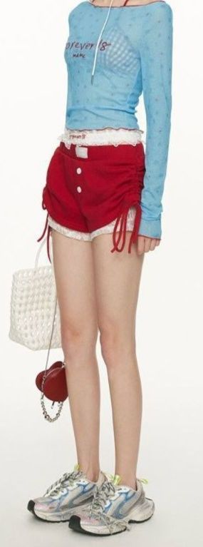 裾からのぞくレースが甘さを添え、夏のお出かけスタイルを楽しく彩ります。