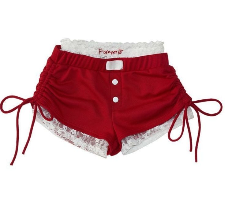 赤コーデに華やかさをプラスする、個性的なデザインのパンツです。