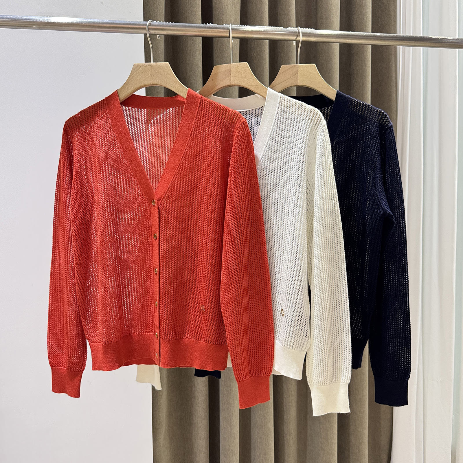 ブイネックラインが女性らしさを引き立て、軽やかな着心地が特徴です。